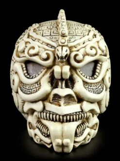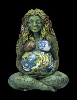 Für die Kelten war der gehörnte Gott Cernunnos der Gott der Natur und des Waldes. Er galt als Begleiter der großen Erdgöttin und auch als Herrscher über Fruchtbarkeit und Wachstum. Bei dieser detailreichen und von Hand in natürlichen Beigetönen bemalten Figur aus hochwertigem Kunststein (Polyresin) wird Cernunnos als Herr der Tiere von einem Rudel wilder und mutiger Wölfen begleitet. Die 31,5 cm hohe, 19,5 cm breite und 12,5 cm tiefe archaisch anmutende Figur des Naturgottes mit dem Bogen in der rechten und einem Schwert in der linken Hand wirkt beinahe, als wäre sie aus einem uralten Holzstück herausgearbeitet. Da der keltische Gott des Waldes auch als Gott der Liebe und des Reichtums verehrt wurde, ist diese beeindruckende Figur auch perfekt als Geschenk geeignet.